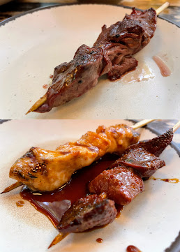 目の前の七輪で炙った肴は香ばしく、日本酒とよく合います。